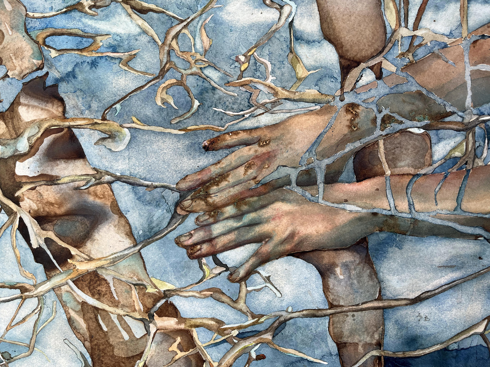 watercolor, coffee, walnut ink, and copper oxide on hot press paper